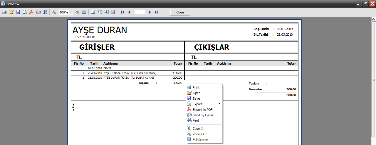 Aldığımız bu listeleri üzerinde sağ tıklayarak veya üstteki butonları kullanarak, istersek yazıcıdan çıktı alabilir, farklı formatlara (pdf,jpg gibi) dönüştürebilir, bilgisayar içerisinde her hangi bir yerde kayıtlarımızı saklayabilir, ve buna benzer bir çok işlemi buradan uygulayabiliriz.