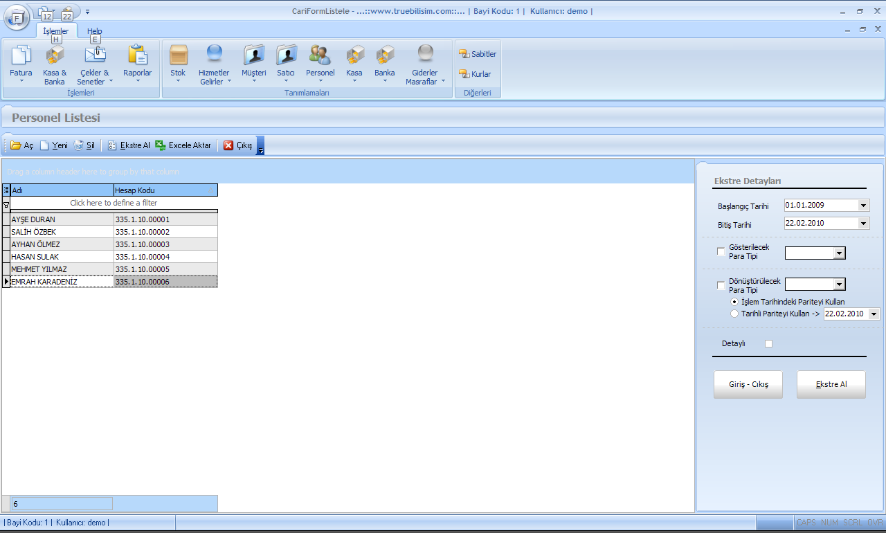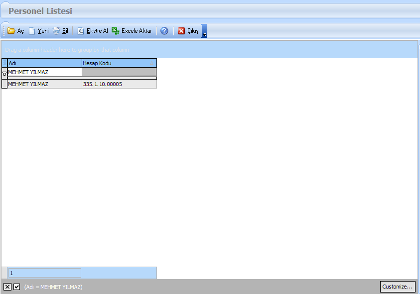 Aç tuşuna bastığımızda aşağıdaki gibi Personel Listesi ekrana getirecektir.