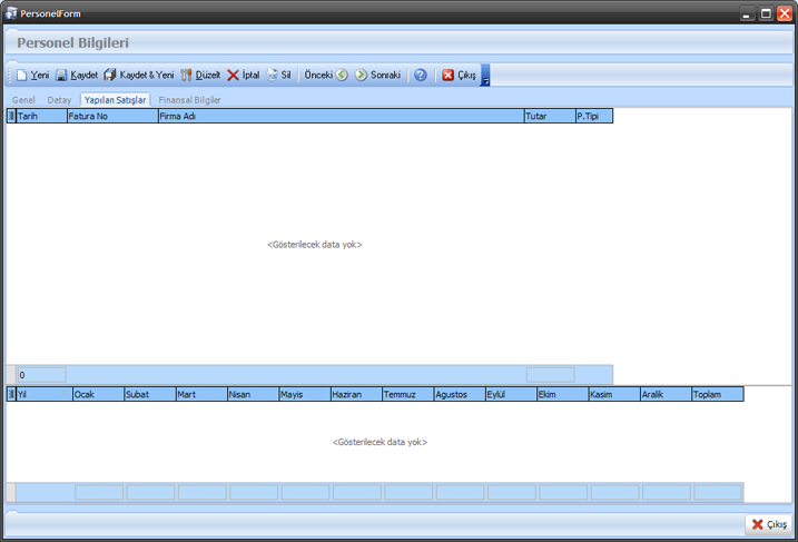 Personelin yapmış olduğu satışları Yapılan Satışlar sekmesinden takip edebilirsiniz.Tabi bu hanelerin dolabilmesi için her faturada satışı gerçekleştiren personel bilgini girmelisiniz.